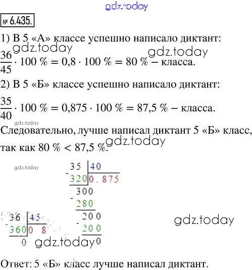 На страницах сайта gdz.today вы найдете учебный и вспомогательный материал, направленный на улучшения знаний школьной программы. ГДЗ - онлайн мир знаний Глава 6. Десятичные дроби Часть 2 (решение) 6.435 Учебнику по Математике для 5 класса Виленкин, Жохов Просвещение 2021