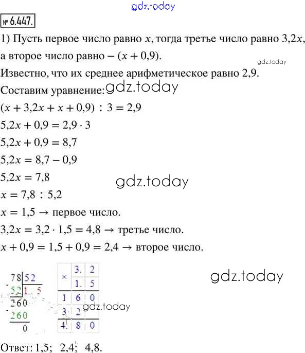 Ответы к Глава 6. Десятичные дроби Часть 2 (решение) 6.447 Учебнику по Математике для 5 класса Виленкин, Жохов Просвещение 2021