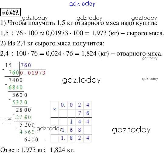 Ответы к Глава 6. Десятичные дроби Часть 2 (решение) 6.459 Учебнику по Математике для 5 класса Виленкин, Жохов Просвещение 2021