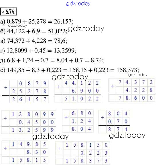 На страницах сайта gdz.today вы найдете учебный и вспомогательный материал, направленный на улучшения знаний школьной программы. ГДЗ - онлайн мир знаний Глава 6. Десятичные дроби Часть 2 (решение) 6.74 Учебнику по Математике для 5 класса Виленкин, Жохов Просвещение 2021