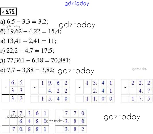 На страницах сайта gdz.today вы найдете учебный и вспомогательный материал, направленный на улучшения знаний школьной программы. ГДЗ - онлайн мир знаний Глава 6. Десятичные дроби Часть 2 (решение) 6.75 Учебнику по Математике для 5 класса Виленкин, Жохов Просвещение 2021