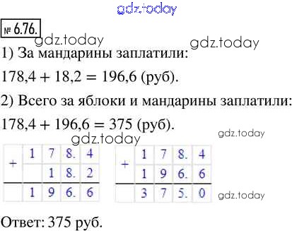 Ответы к Глава 6. Десятичные дроби Часть 2 (решение) 6.76 Учебнику по Математике для 5 класса Виленкин, Жохов Просвещение 2021