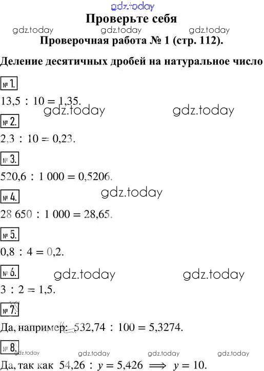 На страницах сайта gdz.today вы найдете учебный и вспомогательный материал, направленный на улучшения знаний школьной программы. ГДЗ - онлайн мир знаний Проверочные работы Часть 2 (решение) стр.112 Учебнику по Математике для 5 класса Виленкин, Жохов Просвещение 2021