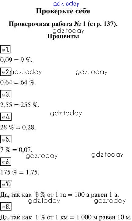 Ответы к Проверочные работы Часть 2 (решение) стр.137 Учебнику по Математике для 5 класса Виленкин, Жохов Просвещение 2021