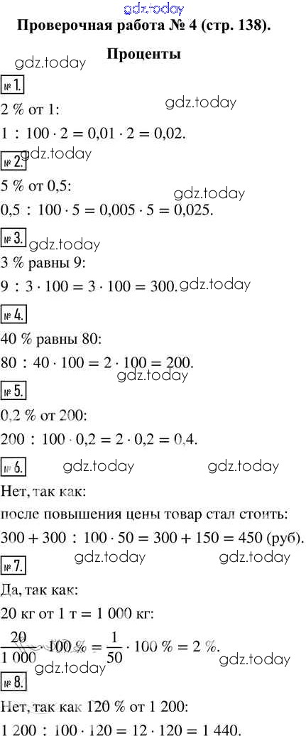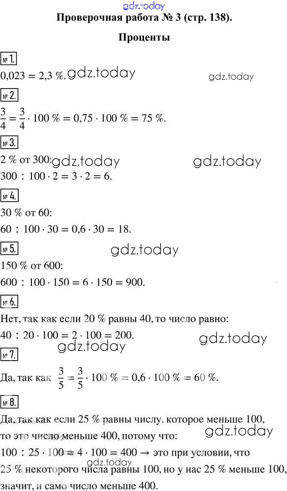 Ответы к Проверочные работы Часть 2 (решение) стр.138 Учебнику по Математике для 5 класса Виленкин, Жохов Просвещение 2021
