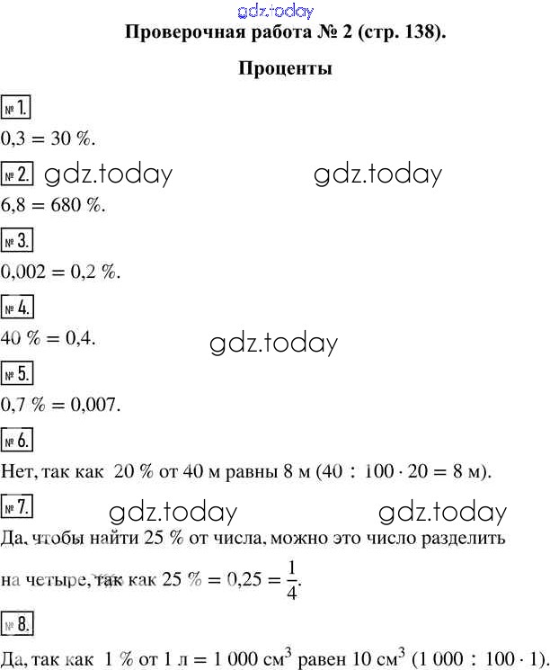 На страницах сайта gdz.today вы найдете учебный и вспомогательный материал, направленный на улучшения знаний школьной программы. ГДЗ - онлайн мир знаний Проверочные работы Часть 2 (решение) стр.138 Учебнику по Математике для 5 класса Виленкин, Жохов Просвещение 2021