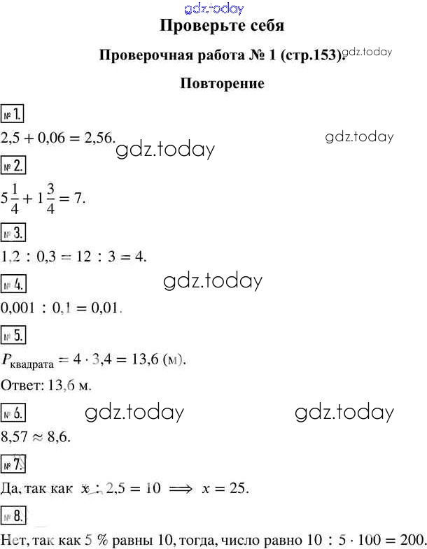 Ответы к Проверочные работы Часть 2 (решение) стр.153 Учебнику по Математике для 5 класса Виленкин, Жохов Просвещение 2021