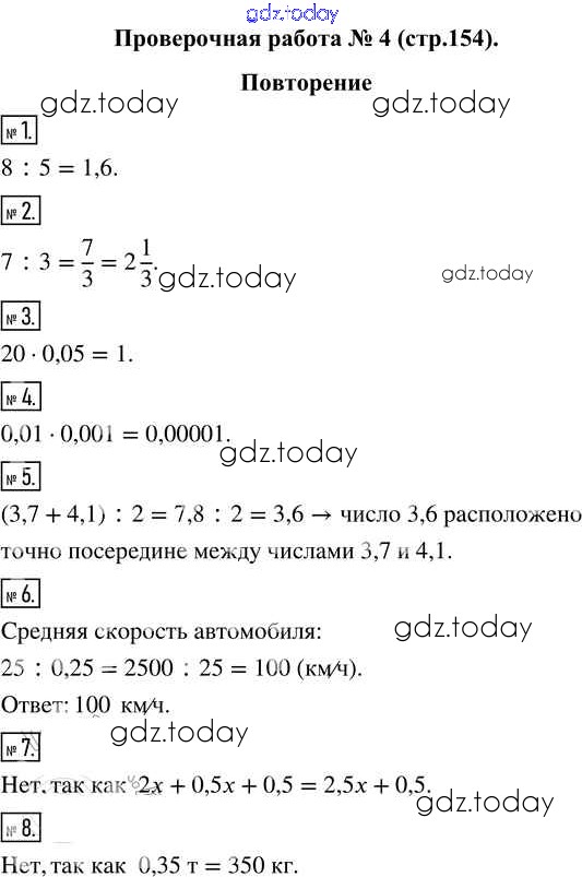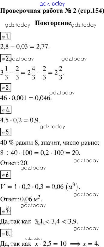 Ответы к Проверочные работы Часть 2 (решение) стр.154 Учебнику по Математике для 5 класса Виленкин, Жохов Просвещение 2021