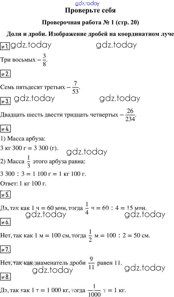 Ответы к Проверочные работы Часть 2 (решение) стр.20 Учебнику по Математике для 5 класса Виленкин, Жохов Просвещение 2021