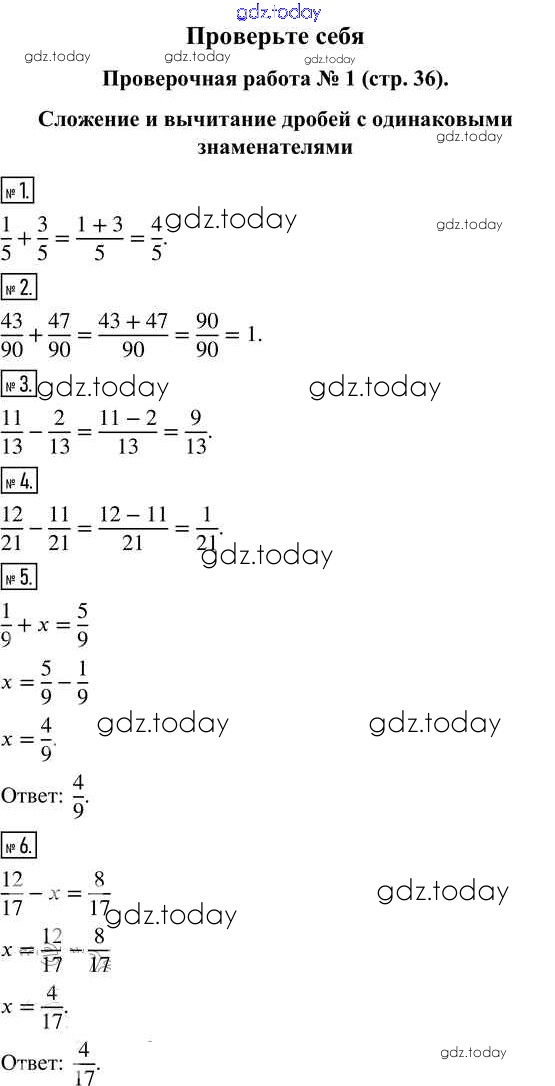 Ответы к Проверочные работы Часть 2 (решение) стр.36 Учебнику по Математике для 5 класса Виленкин, Жохов Просвещение 2021