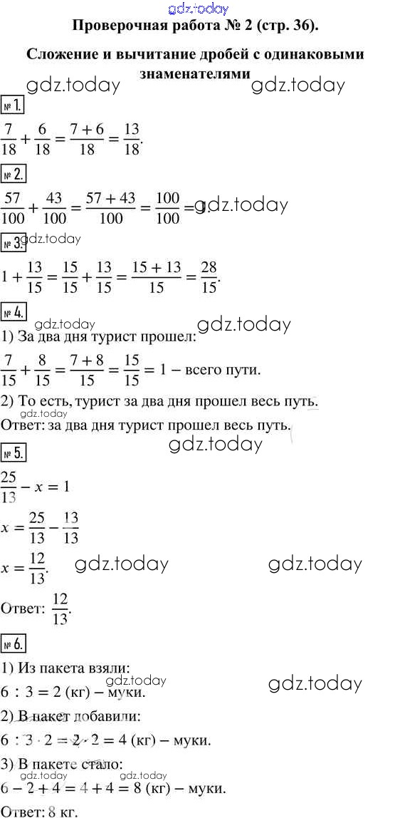 На страницах сайта gdz.today вы найдете учебный и вспомогательный материал, направленный на улучшения знаний школьной программы. ГДЗ - онлайн мир знаний Проверочные работы Часть 2 (решение) стр.36 Учебнику по Математике для 5 класса Виленкин, Жохов Просвещение 2021