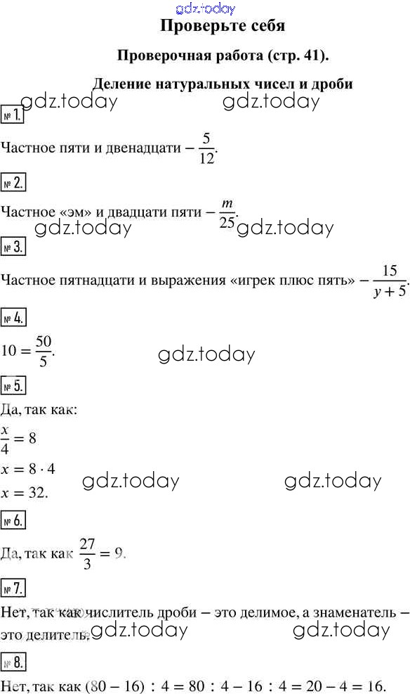 На страницах сайта gdz.today вы найдете учебный и вспомогательный материал, направленный на улучшения знаний школьной программы. ГДЗ - онлайн мир знаний Проверочные работы Часть 2 (решение) стр.41 Учебнику по Математике для 5 класса Виленкин, Жохов Просвещение 2021