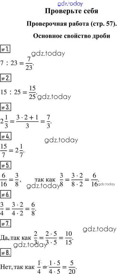 На страницах сайта gdz.today вы найдете учебный и вспомогательный материал, направленный на улучшения знаний школьной программы. ГДЗ - онлайн мир знаний Проверочные работы Часть 2 (решение) стр.57 Учебнику по Математике для 5 класса Виленкин, Жохов Просвещение 2021