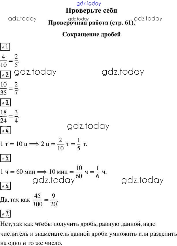 На страницах сайта gdz.today вы найдете учебный и вспомогательный материал, направленный на улучшения знаний школьной программы. ГДЗ - онлайн мир знаний Проверочные работы Часть 2 (решение) стр.61 Учебнику по Математике для 5 класса Виленкин, Жохов Просвещение 2021