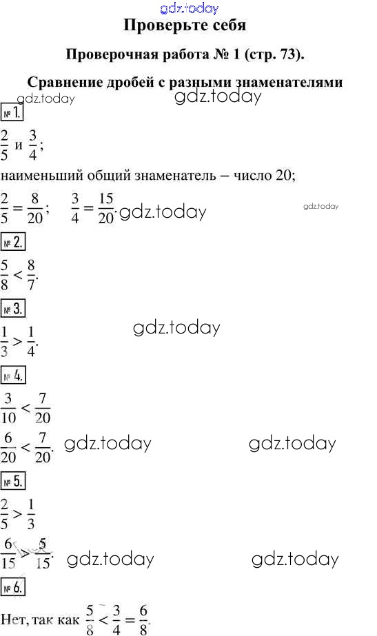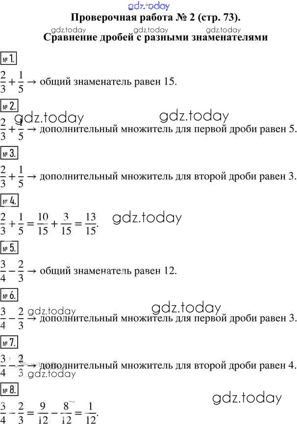 На страницах сайта gdz.today вы найдете учебный и вспомогательный материал, направленный на улучшения знаний школьной программы. ГДЗ - онлайн мир знаний Проверочные работы Часть 2 (решение) стр.73 Учебнику по Математике для 5 класса Виленкин, Жохов Просвещение 2021
