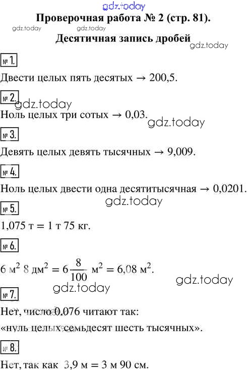 На страницах сайта gdz.today вы найдете учебный и вспомогательный материал, направленный на улучшения знаний школьной программы. ГДЗ - онлайн мир знаний Проверочные работы Часть 2 (решение) стр.81 Учебнику по Математике для 5 класса Виленкин, Жохов Просвещение 2021