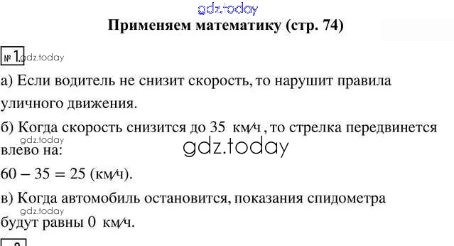На страницах сайта gdz.today вы найдете учебный и вспомогательный материал, направленный на улучшения знаний школьной программы. ГДЗ - онлайн мир знаний Страница 74 Применяем математику 1 Учебнику по Математике для 5 класса Виленкин, Жохов Просвещение 2021