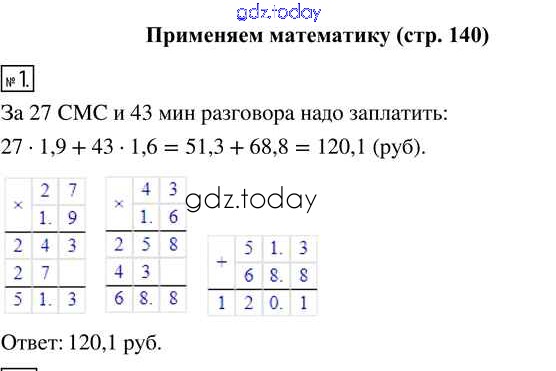 Ответы к Страница 140 Применяем математику 1 Учебнику по Математике для 5 класса Виленкин, Жохов Просвещение 2021