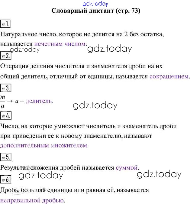 Ответы к Словарный диктант Часть 2 (решение) стр.73 Учебнику по Математике для 5 класса Виленкин, Жохов Просвещение 2021