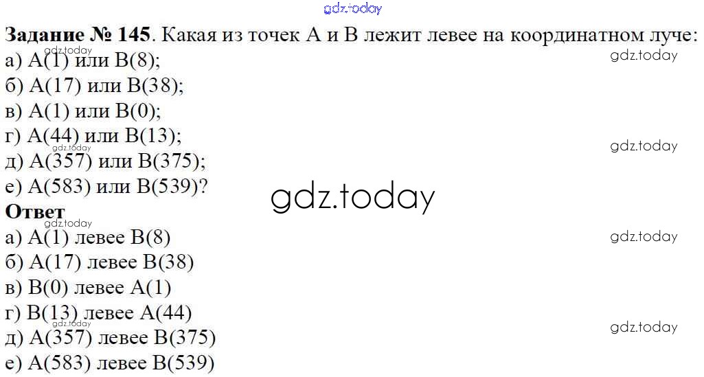 На страницах сайта gdz.today вы найдете учебный и вспомогательный материал, направленный на улучшения знаний школьной программы. ГДЗ - онлайн мир знаний Решение к главе 1. Натуральные числа (упражнения с 1 по 849) 145 Учебнику по Математике для 5 класса Виленкин, Жохов Мнемозина 2013