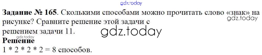На страницах сайта gdz.today вы найдете учебный и вспомогательный материал, направленный на улучшения знаний школьной программы. ГДЗ - онлайн мир знаний Решение к главе 1. Натуральные числа (упражнения с 1 по 849) 165 Учебнику по Математике для 5 класса Виленкин, Жохов Мнемозина 2013
