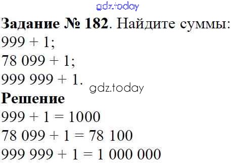 На страницах сайта gdz.today вы найдете учебный и вспомогательный материал, направленный на улучшения знаний школьной программы. ГДЗ - онлайн мир знаний Решение к главе 1. Натуральные числа (упражнения с 1 по 849) 182 Учебнику по Математике для 5 класса Виленкин, Жохов Мнемозина 2013