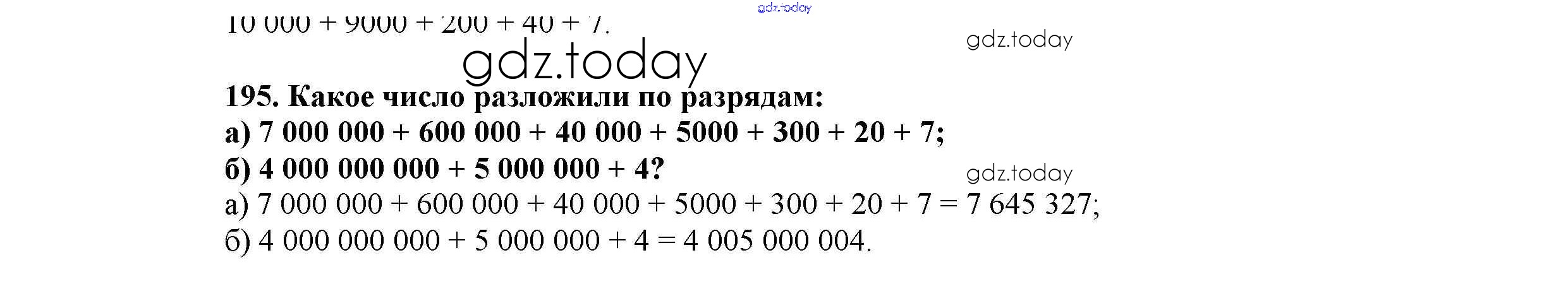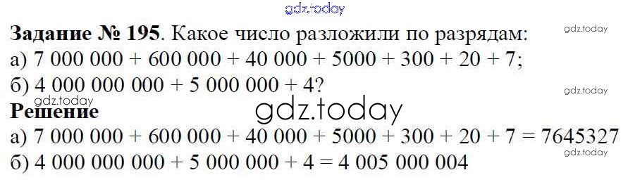 На страницах сайта gdz.today вы найдете учебный и вспомогательный материал, направленный на улучшения знаний школьной программы. ГДЗ - онлайн мир знаний Решение к главе 1. Натуральные числа (упражнения с 1 по 849) 195 Учебнику по Математике для 5 класса Виленкин, Жохов Мнемозина 2013