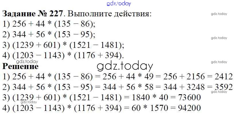 На страницах сайта gdz.today вы найдете учебный и вспомогательный материал, направленный на улучшения знаний школьной программы. ГДЗ - онлайн мир знаний Решение к главе 1. Натуральные числа (упражнения с 1 по 849) 227 Учебнику по Математике для 5 класса Виленкин, Жохов Мнемозина 2013