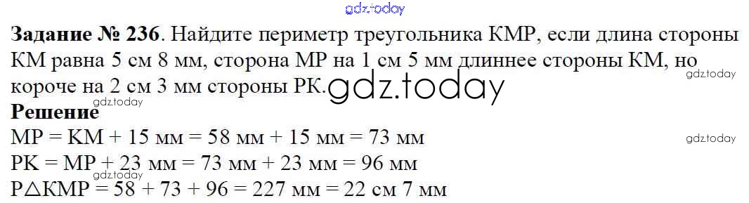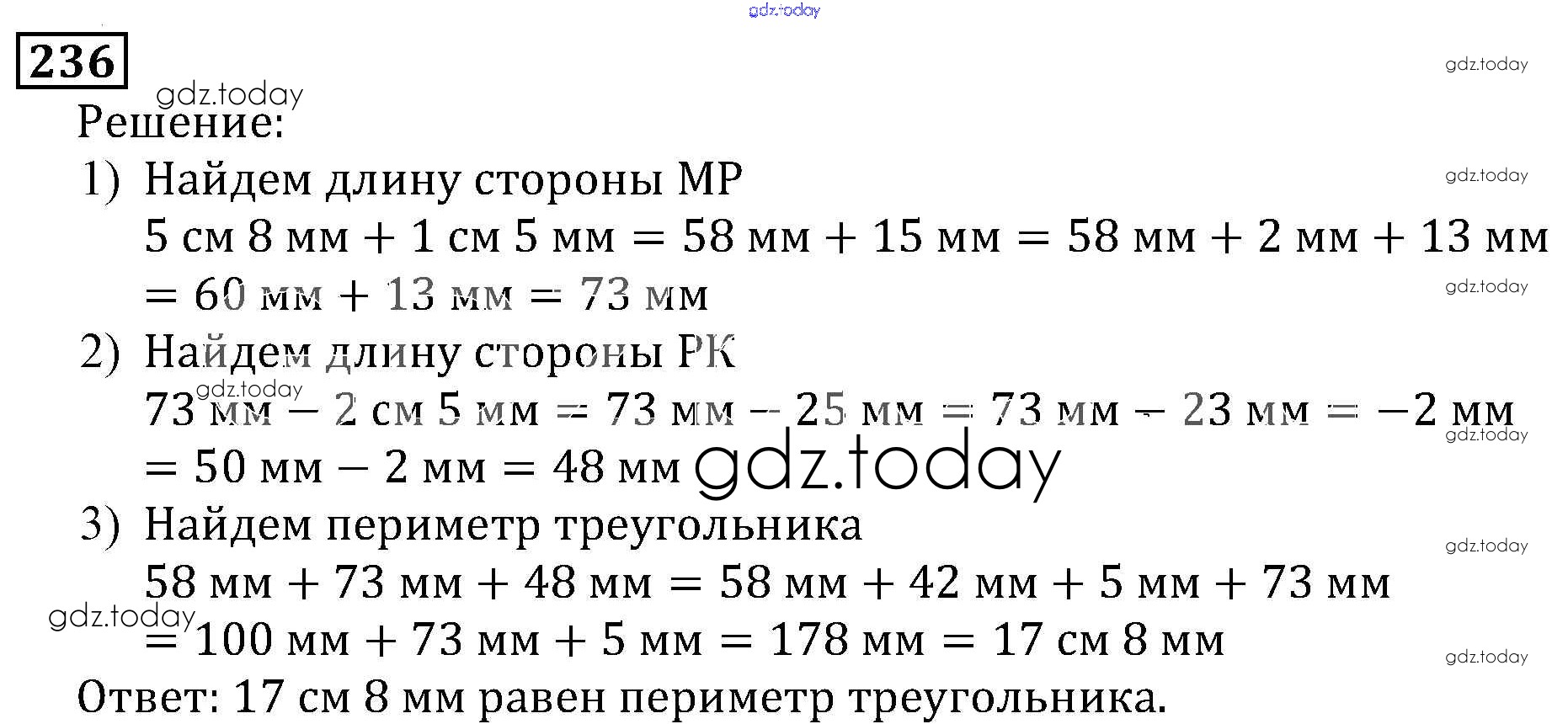 На страницах сайта gdz.today вы найдете учебный и вспомогательный материал, направленный на улучшения знаний школьной программы. ГДЗ - онлайн мир знаний Решение к главе 1. Натуральные числа (упражнения с 1 по 849) 236 Учебнику по Математике для 5 класса Виленкин, Жохов Мнемозина 2013
