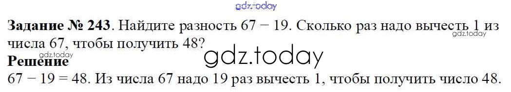 На страницах сайта gdz.today вы найдете учебный и вспомогательный материал, направленный на улучшения знаний школьной программы. ГДЗ - онлайн мир знаний Решение к главе 1. Натуральные числа (упражнения с 1 по 849) 243 Учебнику по Математике для 5 класса Виленкин, Жохов Мнемозина 2013