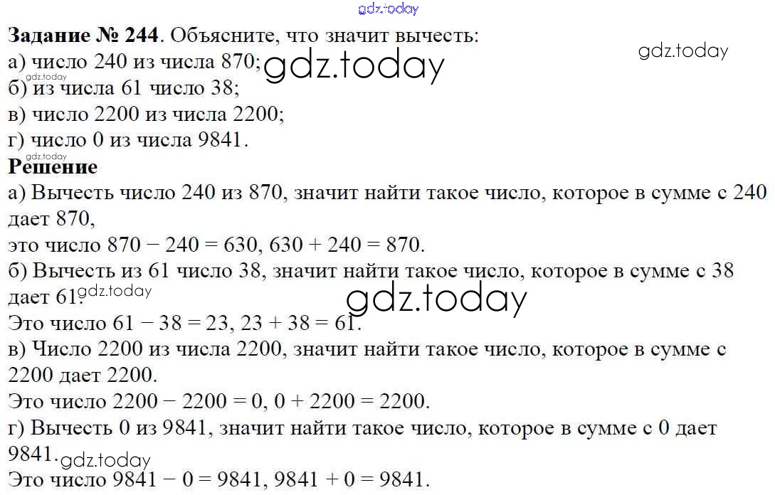 На страницах сайта gdz.today вы найдете учебный и вспомогательный материал, направленный на улучшения знаний школьной программы. ГДЗ - онлайн мир знаний Решение к главе 1. Натуральные числа (упражнения с 1 по 849) 244 Учебнику по Математике для 5 класса Виленкин, Жохов Мнемозина 2013