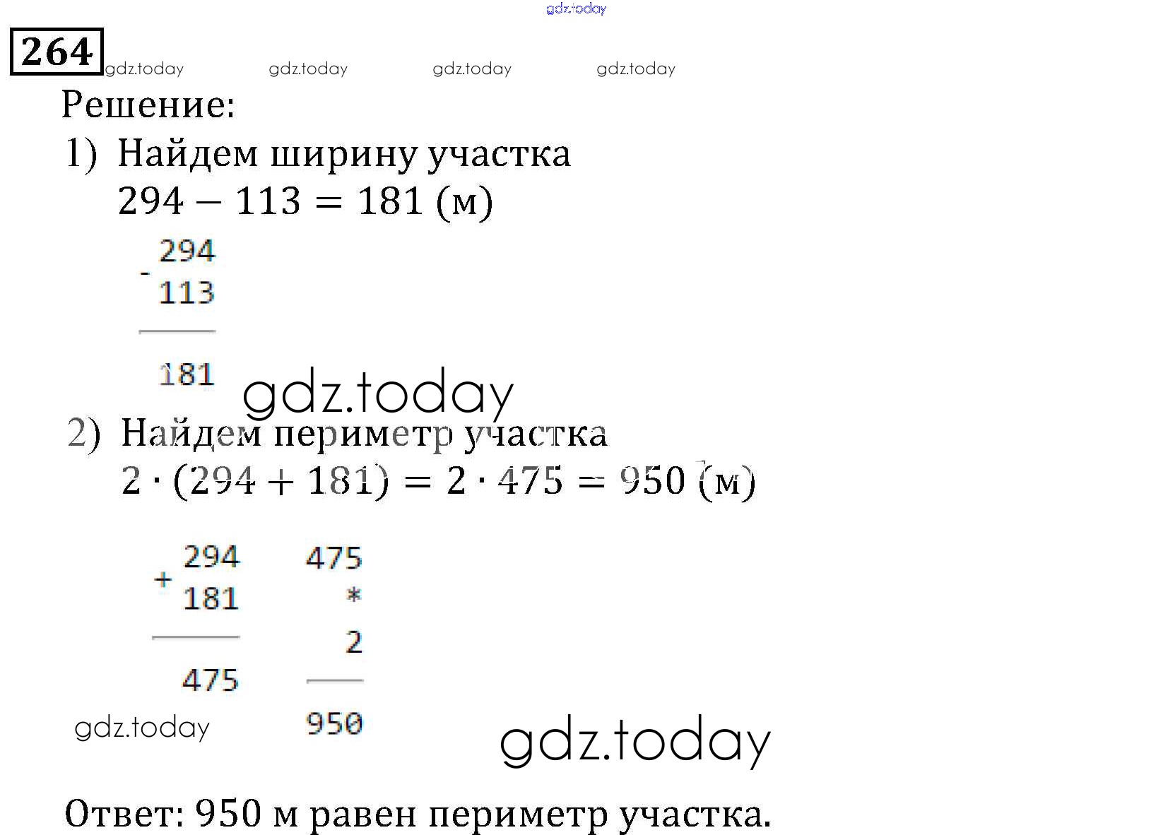 На страницах сайта gdz.today вы найдете учебный и вспомогательный материал, направленный на улучшения знаний школьной программы. ГДЗ - онлайн мир знаний Решение к главе 1. Натуральные числа (упражнения с 1 по 849) 264 Учебнику по Математике для 5 класса Виленкин, Жохов Мнемозина 2013