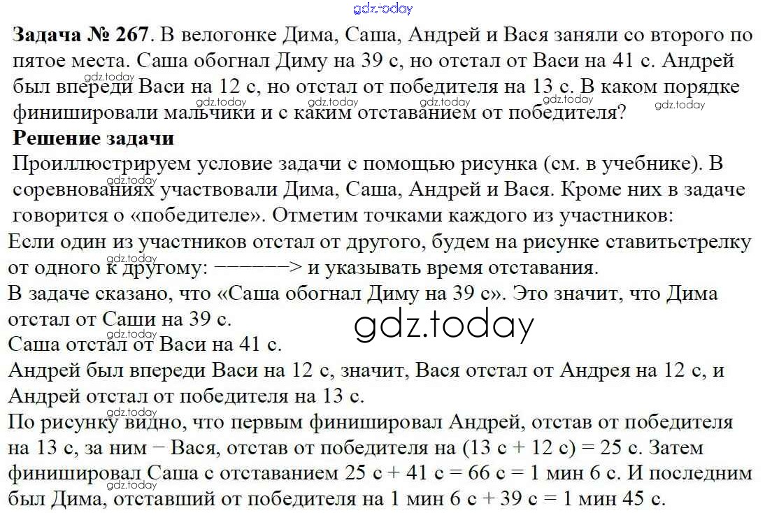 На страницах сайта gdz.today вы найдете учебный и вспомогательный материал, направленный на улучшения знаний школьной программы. ГДЗ - онлайн мир знаний Решение к главе 1. Натуральные числа (упражнения с 1 по 849) 267 Учебнику по Математике для 5 класса Виленкин, Жохов Мнемозина 2013