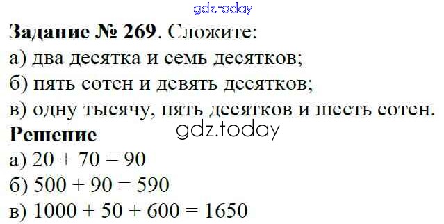 На страницах сайта gdz.today вы найдете учебный и вспомогательный материал, направленный на улучшения знаний школьной программы. ГДЗ - онлайн мир знаний Решение к главе 1. Натуральные числа (упражнения с 1 по 849) 269 Учебнику по Математике для 5 класса Виленкин, Жохов Мнемозина 2013
