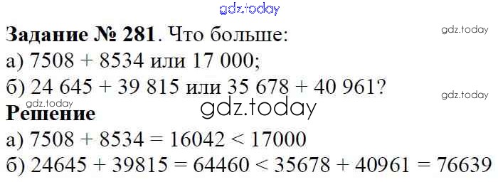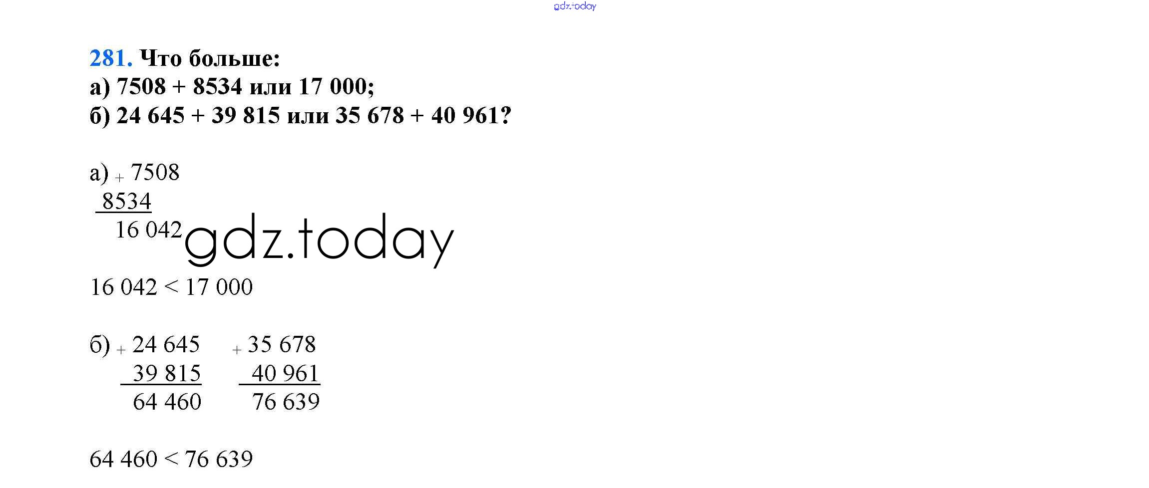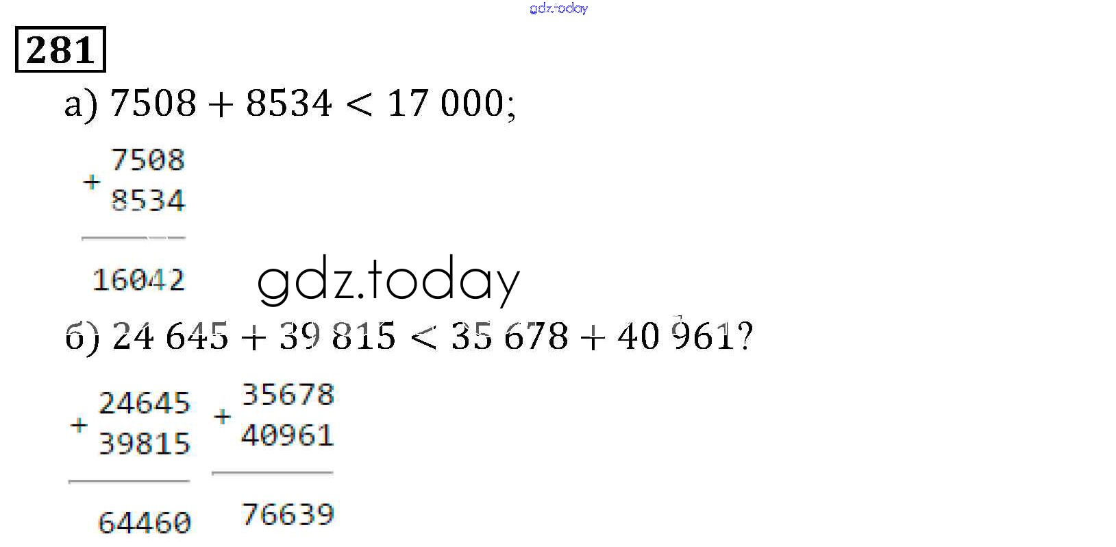 На страницах сайта gdz.today вы найдете учебный и вспомогательный материал, направленный на улучшения знаний школьной программы. ГДЗ - онлайн мир знаний Решение к главе 1. Натуральные числа (упражнения с 1 по 849) 281 Учебнику по Математике для 5 класса Виленкин, Жохов Мнемозина 2013