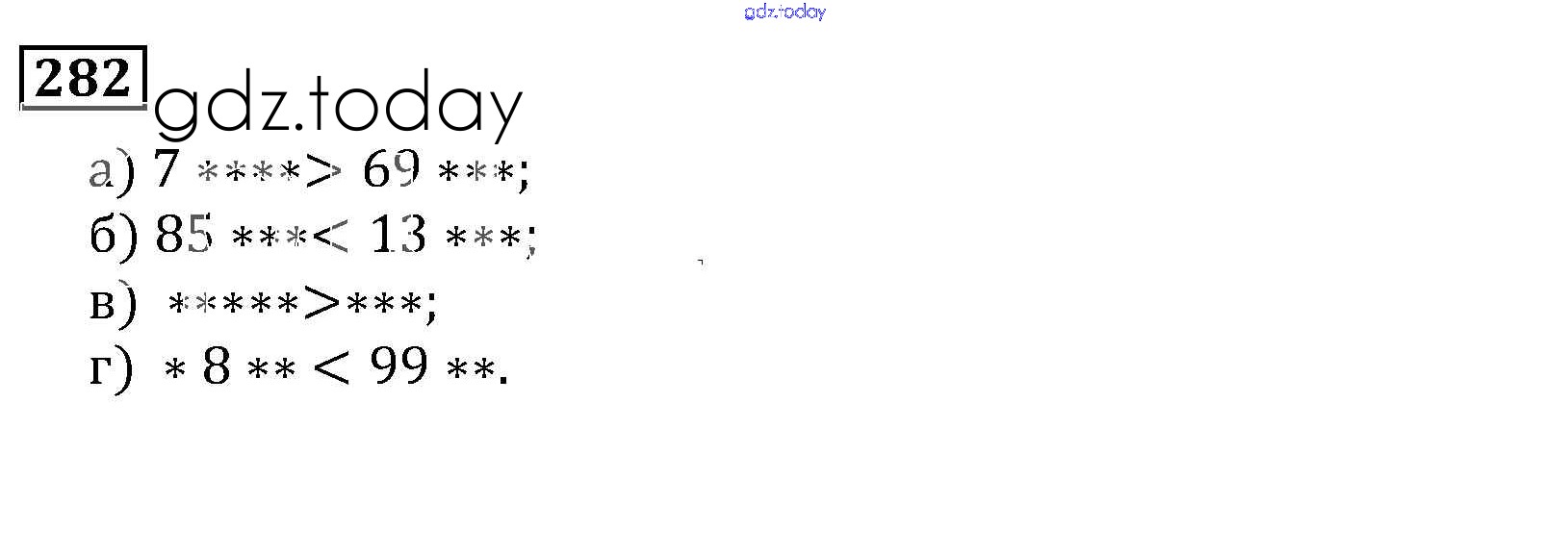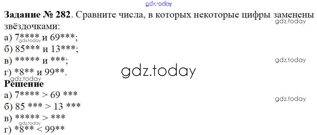 На страницах сайта gdz.today вы найдете учебный и вспомогательный материал, направленный на улучшения знаний школьной программы. ГДЗ - онлайн мир знаний Решение к главе 1. Натуральные числа (упражнения с 1 по 849) 282 Учебнику по Математике для 5 класса Виленкин, Жохов Мнемозина 2013