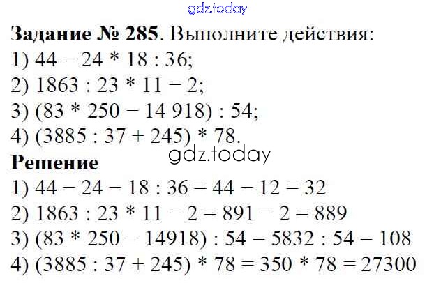 На страницах сайта gdz.today вы найдете учебный и вспомогательный материал, направленный на улучшения знаний школьной программы. ГДЗ - онлайн мир знаний Решение к главе 1. Натуральные числа (упражнения с 1 по 849) 285 Учебнику по Математике для 5 класса Виленкин, Жохов Мнемозина 2013