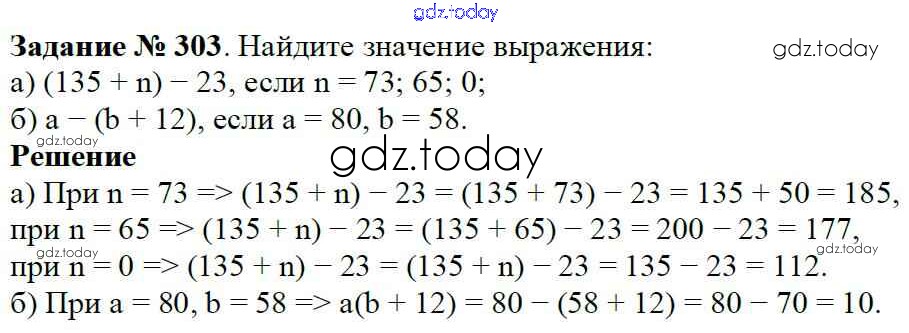 На страницах сайта gdz.today вы найдете учебный и вспомогательный материал, направленный на улучшения знаний школьной программы. ГДЗ - онлайн мир знаний Решение к главе 1. Натуральные числа (упражнения с 1 по 849) 303 Учебнику по Математике для 5 класса Виленкин, Жохов Мнемозина 2013