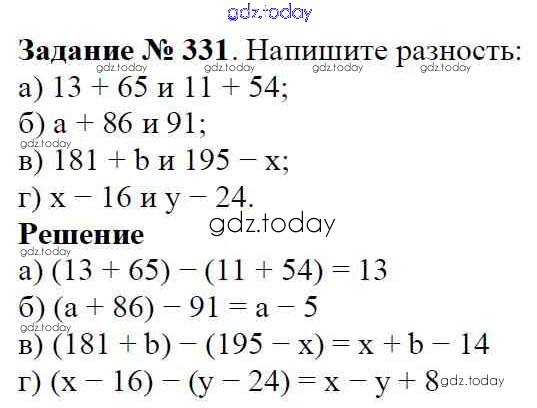 На страницах сайта gdz.today вы найдете учебный и вспомогательный материал, направленный на улучшения знаний школьной программы. ГДЗ - онлайн мир знаний Решение к главе 1. Натуральные числа (упражнения с 1 по 849) 331 Учебнику по Математике для 5 класса Виленкин, Жохов Мнемозина 2013