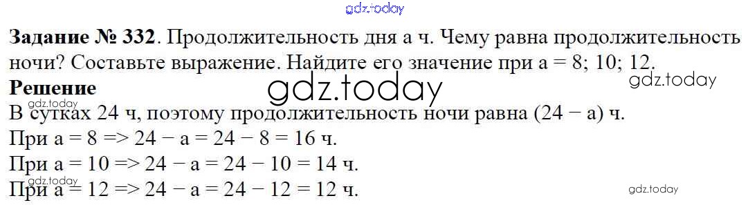 На страницах сайта gdz.today вы найдете учебный и вспомогательный материал, направленный на улучшения знаний школьной программы. ГДЗ - онлайн мир знаний Решение к главе 1. Натуральные числа (упражнения с 1 по 849) 332 Учебнику по Математике для 5 класса Виленкин, Жохов Мнемозина 2013