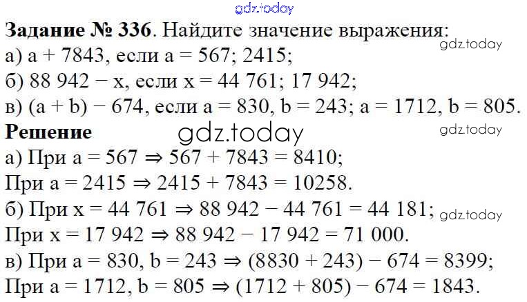На страницах сайта gdz.today вы найдете учебный и вспомогательный материал, направленный на улучшения знаний школьной программы. ГДЗ - онлайн мир знаний Решение к главе 1. Натуральные числа (упражнения с 1 по 849) 336 Учебнику по Математике для 5 класса Виленкин, Жохов Мнемозина 2013