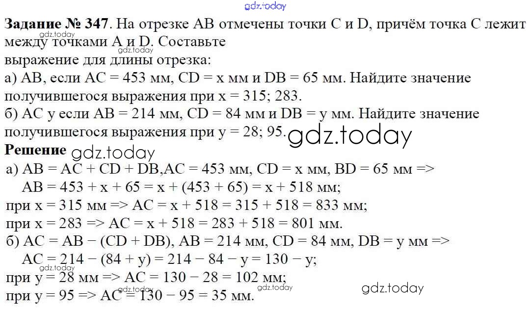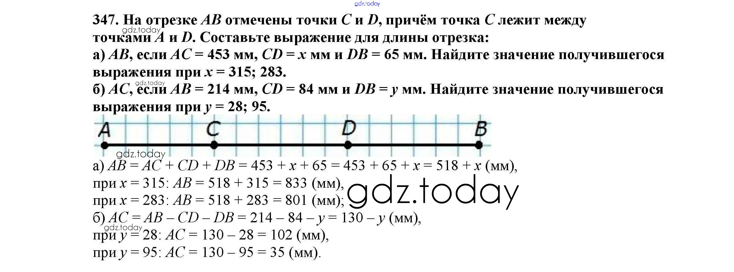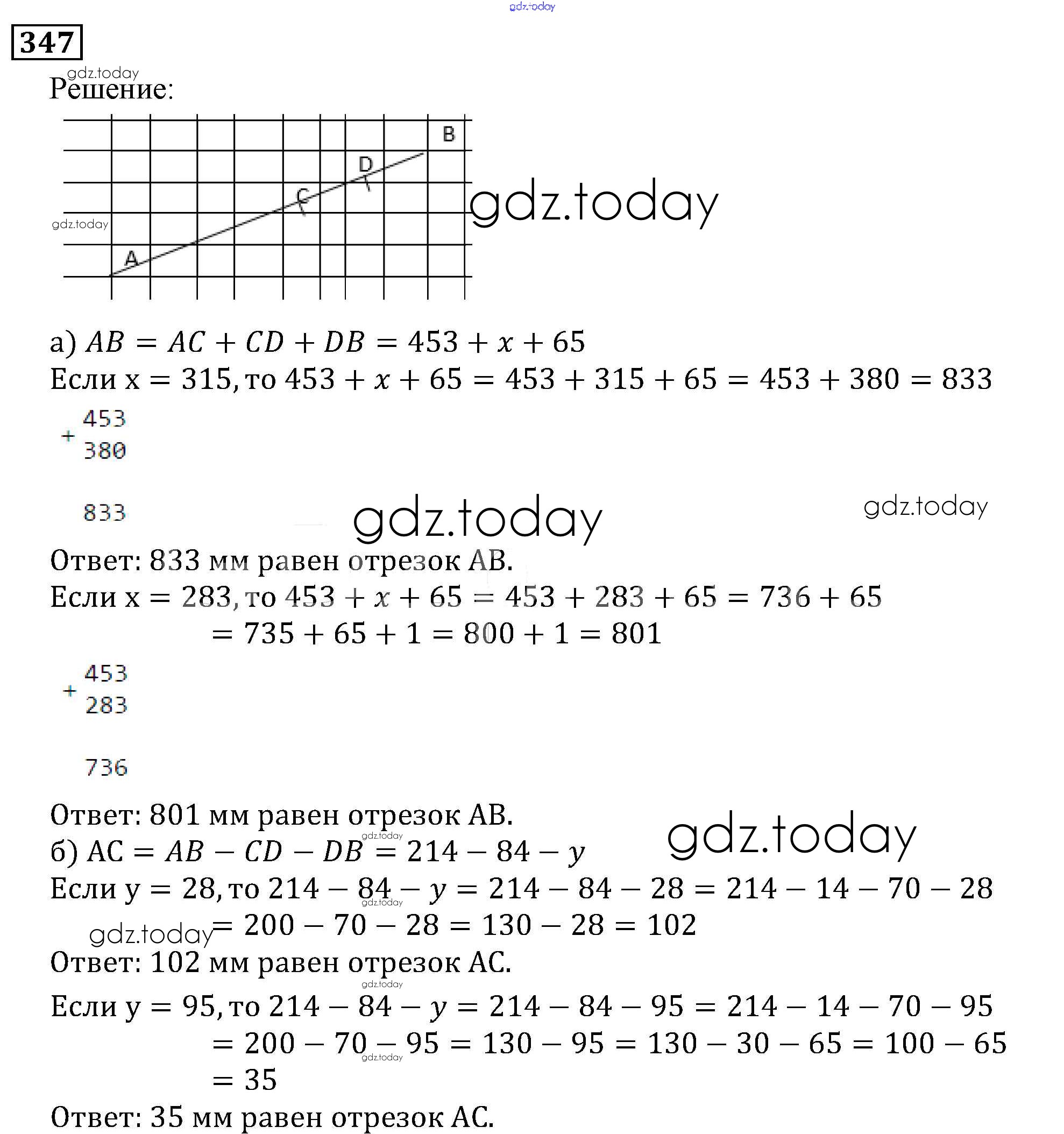 На страницах сайта gdz.today вы найдете учебный и вспомогательный материал, направленный на улучшения знаний школьной программы. ГДЗ - онлайн мир знаний Решение к главе 1. Натуральные числа (упражнения с 1 по 849) 347 Учебнику по Математике для 5 класса Виленкин, Жохов Мнемозина 2013