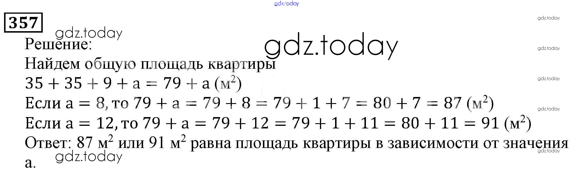 На страницах сайта gdz.today вы найдете учебный и вспомогательный материал, направленный на улучшения знаний школьной программы. ГДЗ - онлайн мир знаний Решение к главе 1. Натуральные числа (упражнения с 1 по 849) 357 Учебнику по Математике для 5 класса Виленкин, Жохов Мнемозина 2013