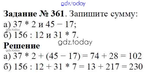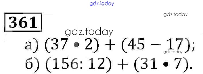 На страницах сайта gdz.today вы найдете учебный и вспомогательный материал, направленный на улучшения знаний школьной программы. ГДЗ - онлайн мир знаний Решение к главе 1. Натуральные числа (упражнения с 1 по 849) 361 Учебнику по Математике для 5 класса Виленкин, Жохов Мнемозина 2013