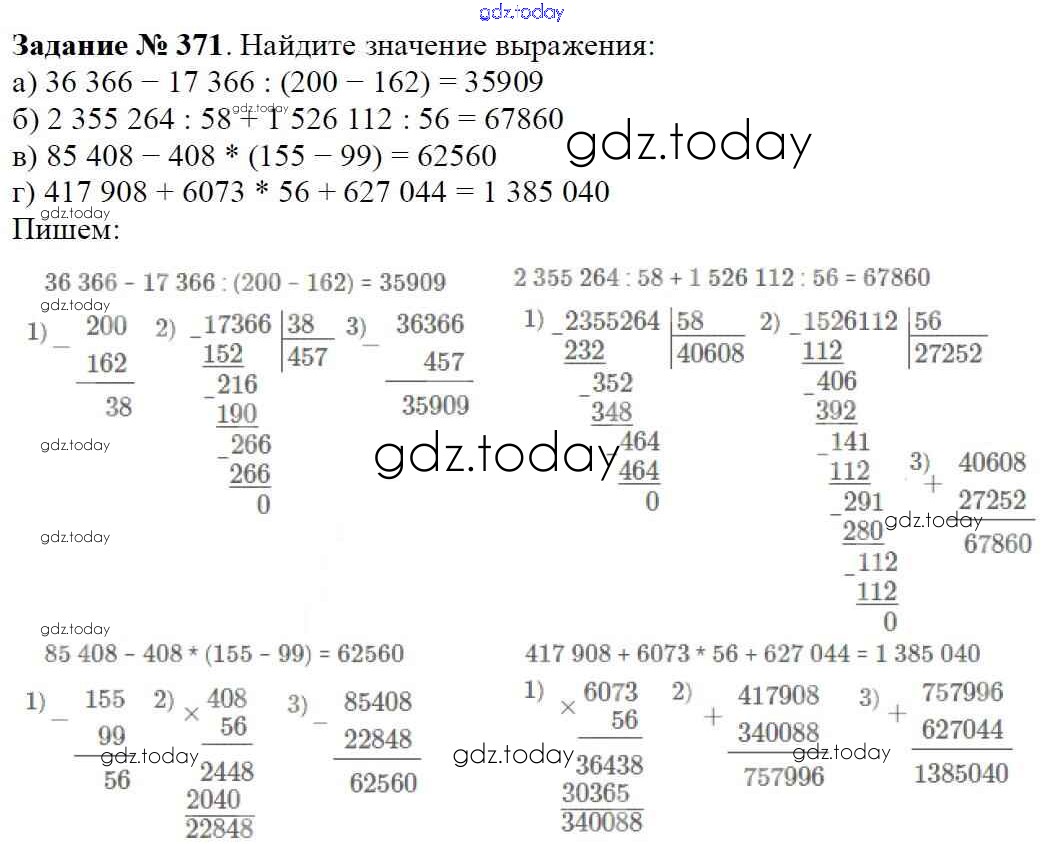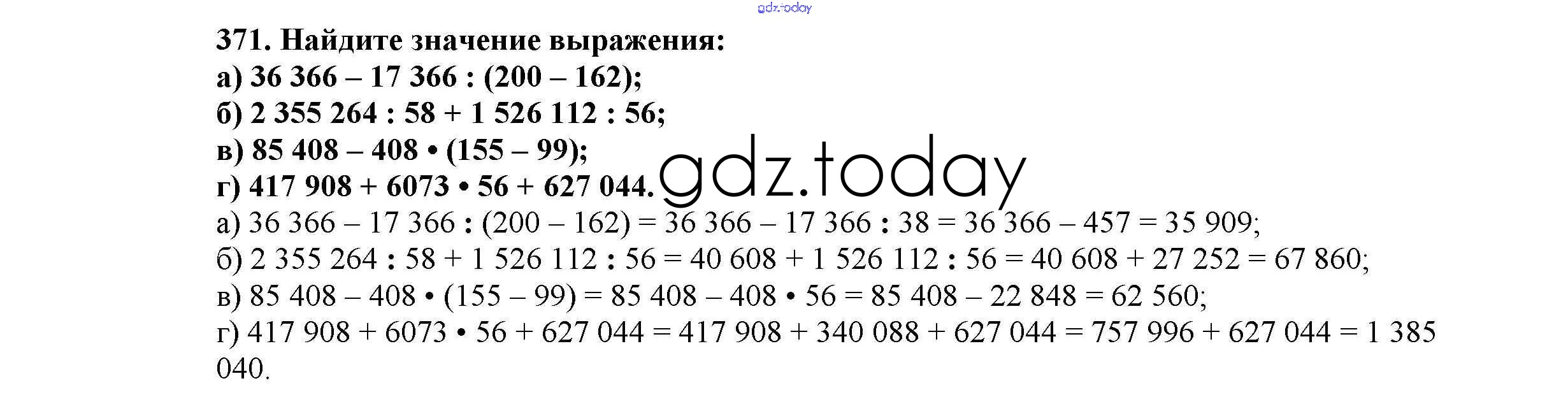 На страницах сайта gdz.today вы найдете учебный и вспомогательный материал, направленный на улучшения знаний школьной программы. ГДЗ - онлайн мир знаний Решение к главе 1. Натуральные числа (упражнения с 1 по 849) 371 Учебнику по Математике для 5 класса Виленкин, Жохов Мнемозина 2013