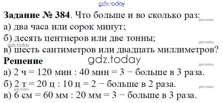 На страницах сайта gdz.today вы найдете учебный и вспомогательный материал, направленный на улучшения знаний школьной программы. ГДЗ - онлайн мир знаний Решение к главе 1. Натуральные числа (упражнения с 1 по 849) 384 Учебнику по Математике для 5 класса Виленкин, Жохов Мнемозина 2013