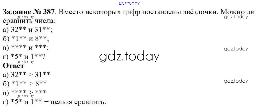 На страницах сайта gdz.today вы найдете учебный и вспомогательный материал, направленный на улучшения знаний школьной программы. ГДЗ - онлайн мир знаний Решение к главе 1. Натуральные числа (упражнения с 1 по 849) 387 Учебнику по Математике для 5 класса Виленкин, Жохов Мнемозина 2013