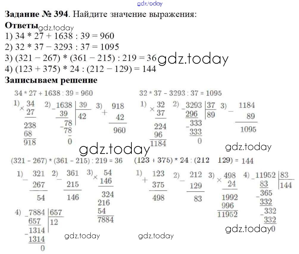 На страницах сайта gdz.today вы найдете учебный и вспомогательный материал, направленный на улучшения знаний школьной программы. ГДЗ - онлайн мир знаний Решение к главе 1. Натуральные числа (упражнения с 1 по 849) 394 Учебнику по Математике для 5 класса Виленкин, Жохов Мнемозина 2013