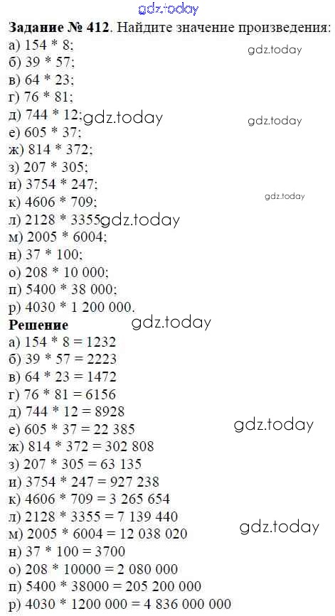 На страницах сайта gdz.today вы найдете учебный и вспомогательный материал, направленный на улучшения знаний школьной программы. ГДЗ - онлайн мир знаний Решение к главе 1. Натуральные числа (упражнения с 1 по 849) 412 Учебнику по Математике для 5 класса Виленкин, Жохов Мнемозина 2013