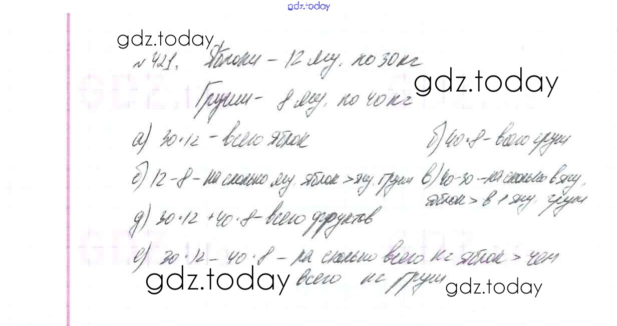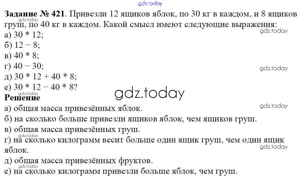 На страницах сайта gdz.today вы найдете учебный и вспомогательный материал, направленный на улучшения знаний школьной программы. ГДЗ - онлайн мир знаний Решение к главе 1. Натуральные числа (упражнения с 1 по 849) 421 Учебнику по Математике для 5 класса Виленкин, Жохов Мнемозина 2013